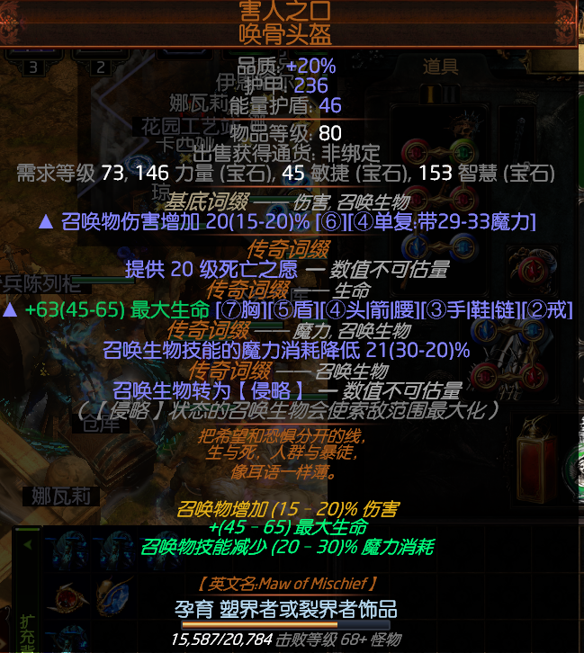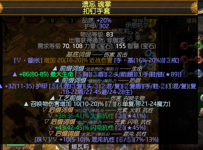 武器前期用富贵终结斧+随意盾或者幽魂之息长杖,不过这样腐化魔像的瘫痪要换成终结,后面换成王者之刃