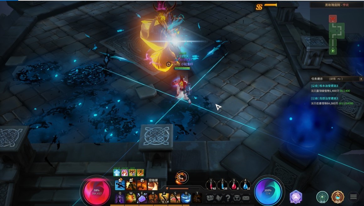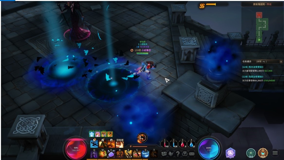 这个BOSS还是非常强的,考验走位和闪避。BOSS攻击频率为一轮暗柱攻击→一轮暗影攻击→3轮冰剑攻击,下面就是短暂的无技能真空期,这时输出最安逸。