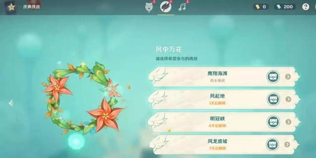 从玩家爆料的消息可以得知原神1.4版本就是蒙德风花节了,风花节会推出三个小游戏活动,第一个活动叫做风中万花,这个活动要求玩家去蒙德的不同地区跳崖,有点类似于之前的飞行挑战活动。