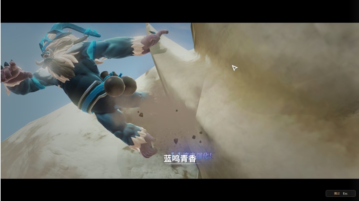 蓝鸣还有锥形打击的技能,但范围不大,存在感不强。此外就是蓝鸣的近战技能,除平砍之外,还有一个大跳后翻滚冲锋技能。如果看到蓝鸣跳起来,可以选择走位避开正面。