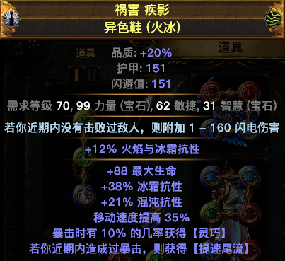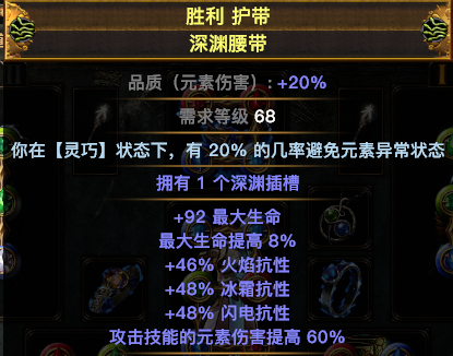 最后说一下我的装备抗性问题,元素抗性我没ROLL满的原因是我凑平了三抗,为了吃欧克。