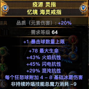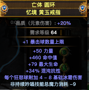 暴击球底子的戒指,用极恐精华点出每个狂怒球附加冰伤,其中一个要有力量命中。。另外一个就血抗就可以了。