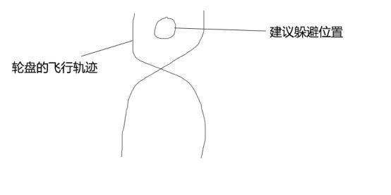 1、轮盘攻击,造型上类似于龙珠里的气圆斩,常规的攻击手法是发射两个轮盘,沿着特定轨迹进行攻击,到达尽头之后轮盘还会返回造成二次伤害。这种情况下轮盘的移动轨迹是固定的,如下图: