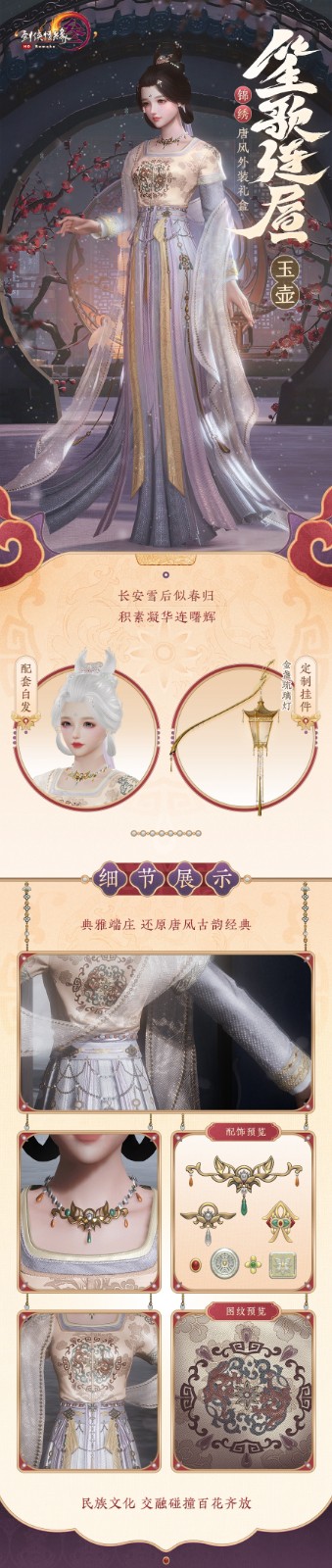 游戏《剑网3》中,飞雪落长安,晨辉织锦绣。很多玩家一定很期待吧。那么笙歌连昼外装外观展示怎么样?各位亲爱的小伙伴,一起来看笙歌连昼玉壶韶颜外观欣赏吧。