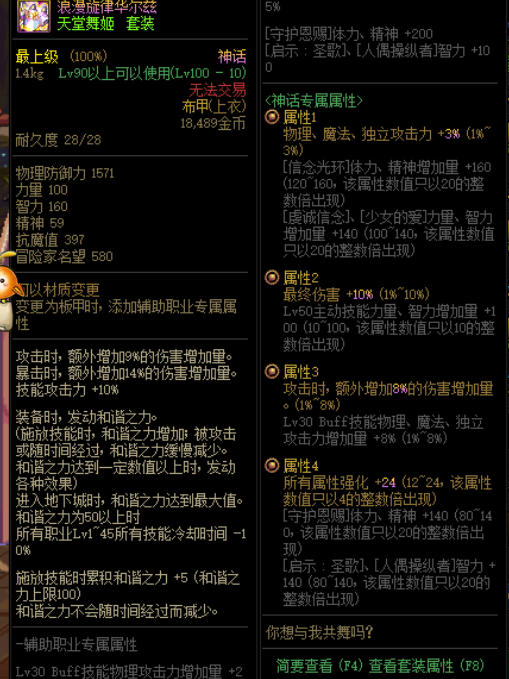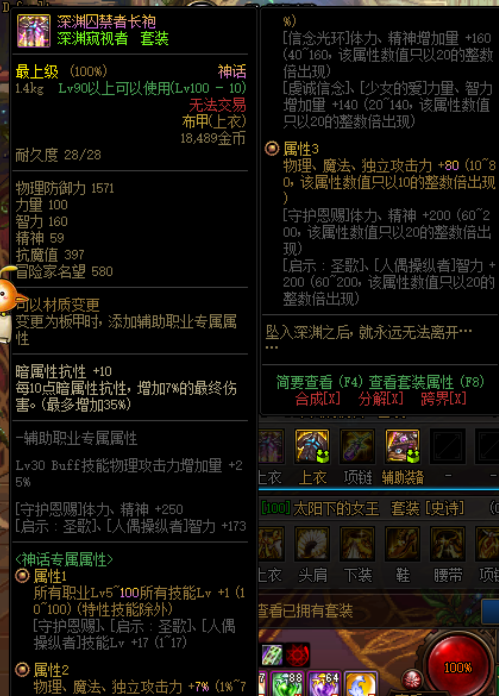 dnf神话跨界“大幽魂”三家,都是很强力的神话,分别是深渊囚禁者长袍、无尽探求、永恒地狱黑暗之印。不过要注意穿搭这三套的时候,注意一下暗属性抗性要达到套装要求值,要不然是会少触发一些伤害词条的。