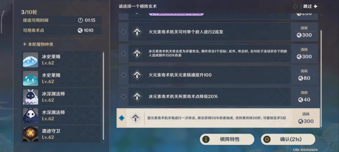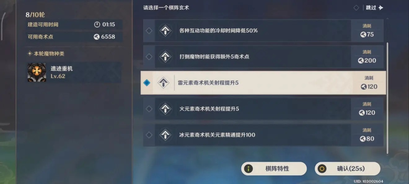 这局我的运气讲道理不算好,只选到了3次雷柱的相关增益效果,除开核心的玄术就一次攻击力一次射程:
