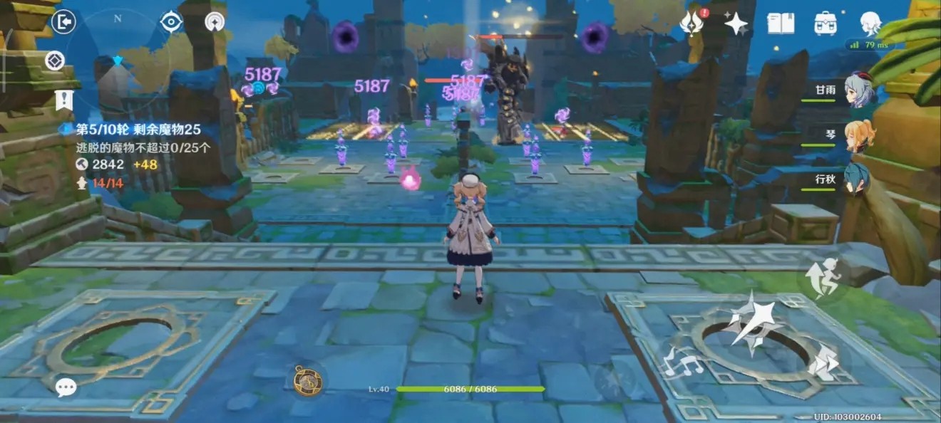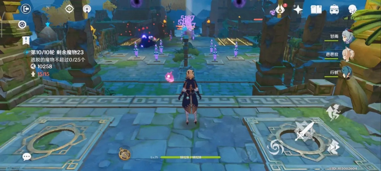 基本上就已经成型了,然后在后面区域布置一点地雷。前期雷柱数量少伤害不够,火把丘丘人跑的快,基本上会剩一丝血到后面传送门附近。