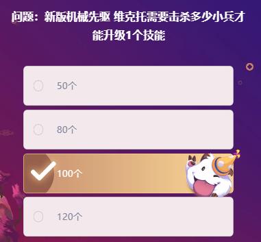 问题:新版机械先驱维克托需要击杀多少小兵才能升级1个技能? 答案:100个
