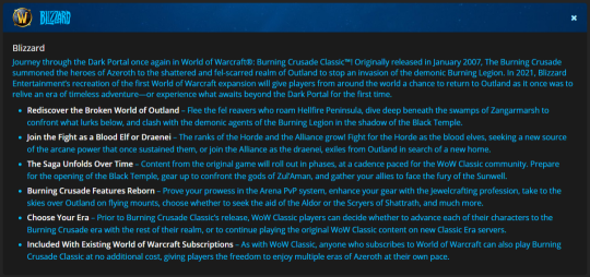 暴雪官网无意间提前泄露了关于嘉年华的新闻稿,其中有很详细的关于TBC怀旧服的信息,目前该新闻稿已经被官网隐藏,但是有玩家进行了截图。