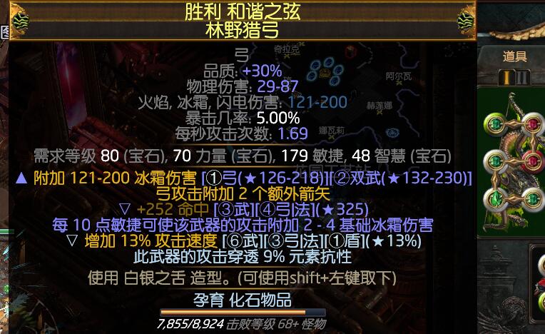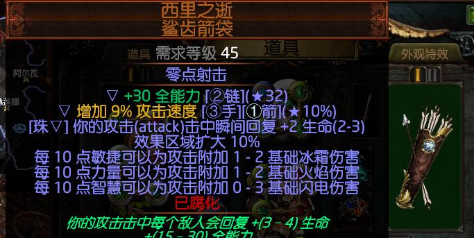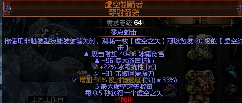⑥此时箭袋属性应该是 T1冰点伤 额外箭矢 敏捷附加冰伤 冰霜抗性(工艺)