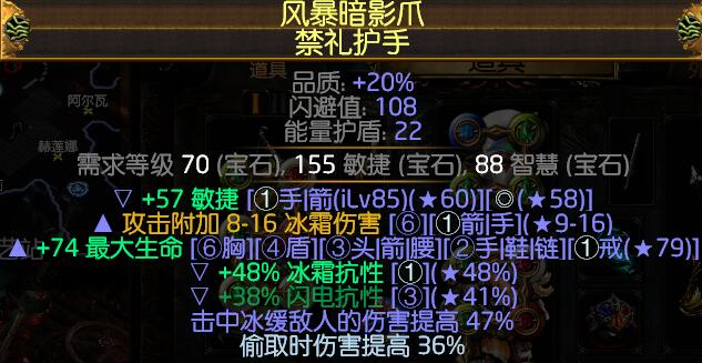⑤后缀打上冰霜抗性工艺 用一个庄园冰霜增幅 100%出敏捷附加冰伤