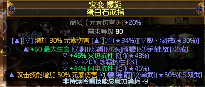 戒指我是直接买的需要的抗性+高roll的攻击技能元素伤害 救赎底子 空前缀后缀
