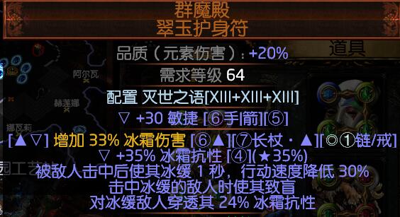 如果没有适合的冰霜的 可以买闪电暴击率或者火焰点伤的 用庄园的抗性转化直接转化成这条词缀