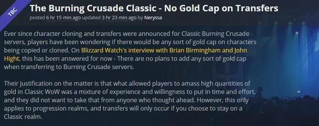 同样的事件也会在TBC服务器中发生,在这种情况下一个服务器内90%以上的金币都会随着角色被一起复制到2个服务器中然后流入市场,金币总量翻倍但是玩家总量还是那么多,必然会出现金币贬值与通胀。