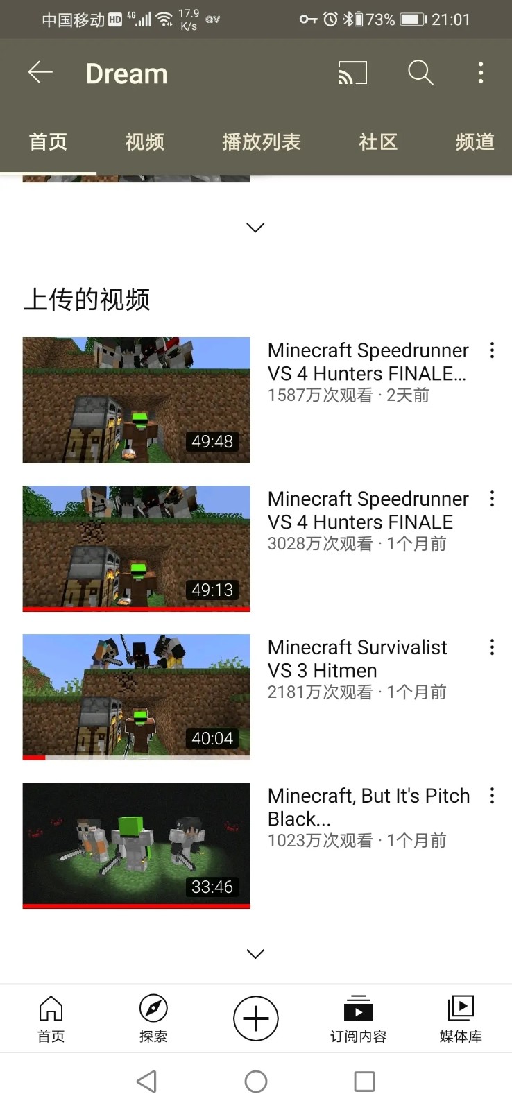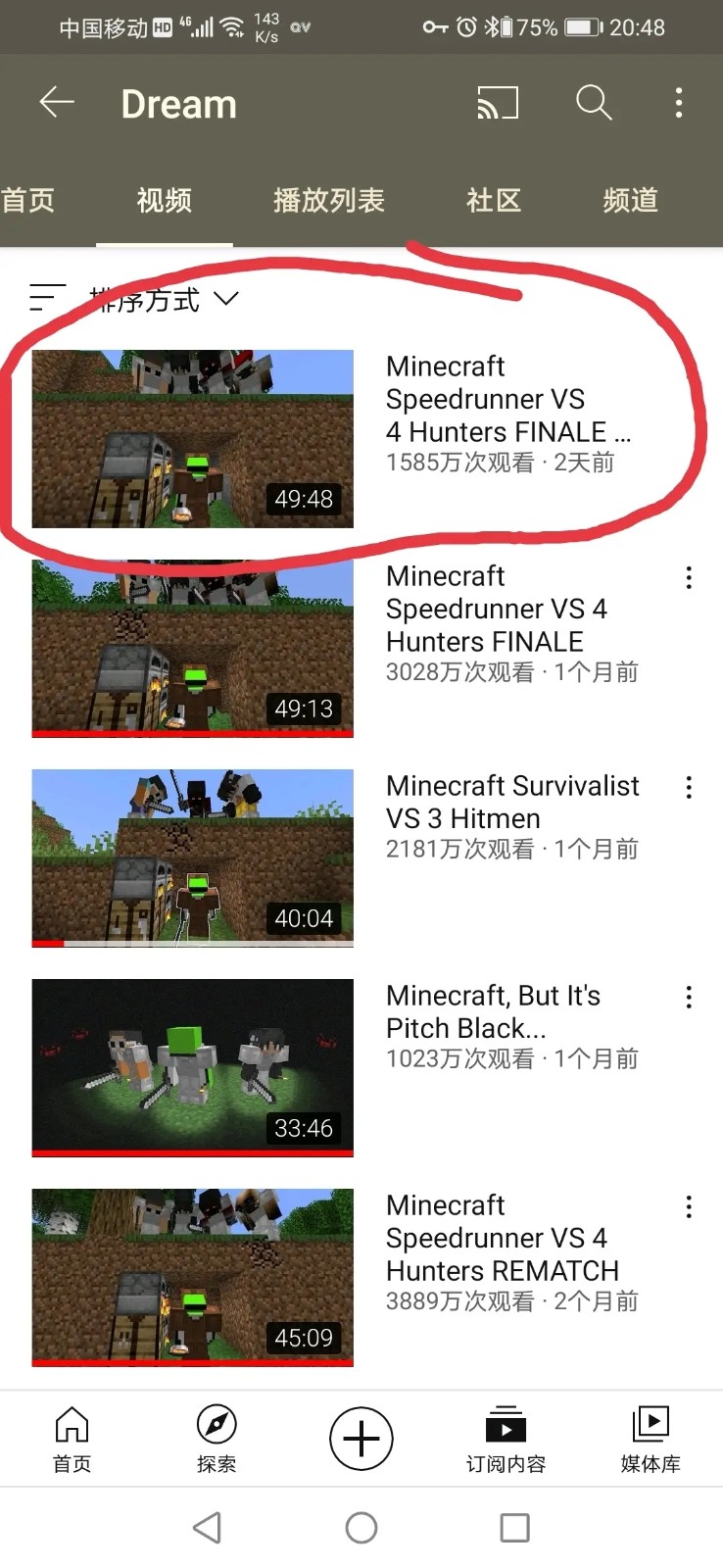 Dream于两天前发布了新一期的猎人游戏视频,标题翻译成中文就是《我的世界速通者VS4名猎人》,有条件的小伙伴们可以直接去YouTube关注Dream观看,没有YouTube软件的小伙伴们可以用上面的网址链接观看到Dream的最新视频(网址请自备梯子)