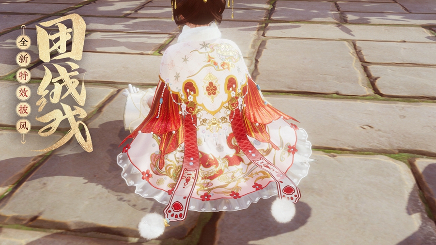 新年新品添新意,全新特效披风“团绒戏”与“落花满卷”抢先曝光!两款披风各具特色。