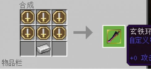 需要六块BOSS掉落的珍贵材料和一块铁锭。也可以合成防具,材料摆放方式与原版盔甲一样。