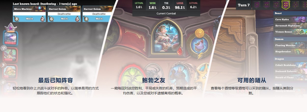 炉石传说中,酒馆战棋可以看胜率的插件是HDT炉石记牌器,也就是炉石传说官方发布的记牌器。玩家下载安装并启动HDT炉石记牌器后,在进行游戏游戏时,就可以看到其他玩家的胜率。