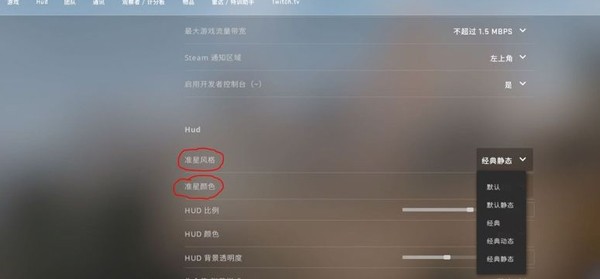 2、在设置界面的游戏设置中,玩家可以在HUD分类中看到【准星风格】的选项,点击后可以自由选择游戏准星;