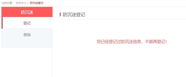 2、在个人中心左侧可以看到【防沉迷登记】的选项,点击后就可以登记自己的防沉迷信息;