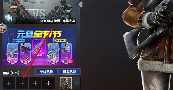 1、首先玩家需要进入游戏的枪王排位模式界面,可以在界面的左下角看到组队窗口;