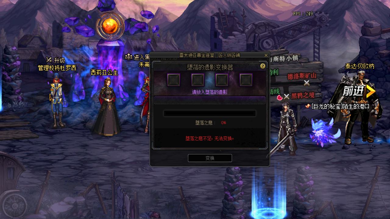 DNF堕落的遗影变换器介绍堕落的遗影变换器是黑鸦之境副本产出的新可交易史诗系列专属系统,可以将4个不需要的堕落产物随机变更,随机四合一,可以在NPC朱蒂灵伍德处开启。