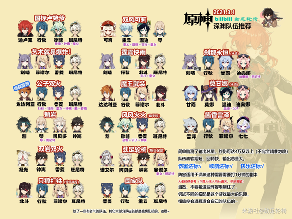 游戏《原神》中,2021年最新顶级深渊阵容推荐:这些阵容大概是同一个级别的,伤害相差不大,搭配的手感都蛮不错的。不过,我强烈推荐公子双火,0命公子就能玩,这大概是我目前认知中0命最强的阵容了,几乎接近满命5星队伍的水准,话不多说,试试就知道了。