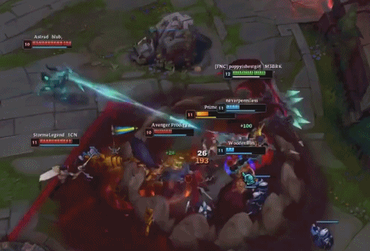 团战的剑魔讲究进团时机,虽然自身的续航和保护都很不错,但毕竟不是纯坦克,所以说团战依旧要等待敌人控制技能放出后,再强势进团切入,切入连招就是开启R技能后QEW三个技能配合装备打超强持续团战,最后配合友军跟进即可。