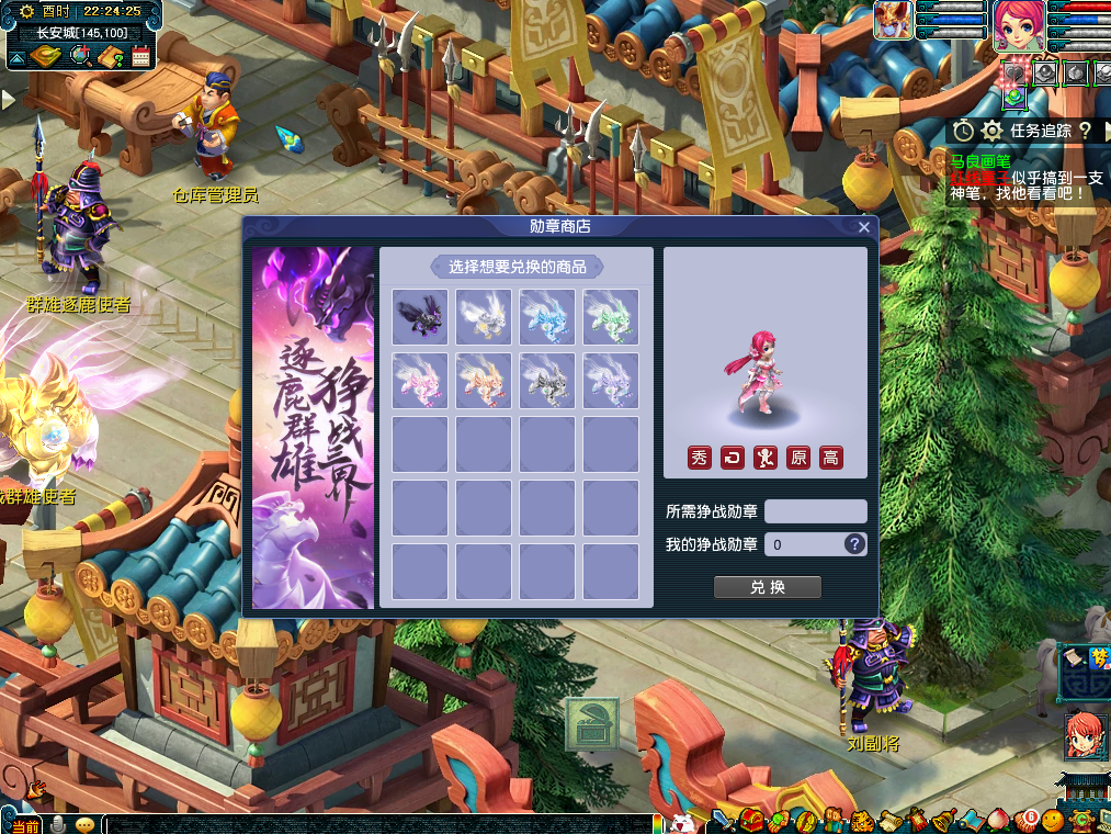 2021年群雄逐鹿赛事开启后,斩获冠军队伍可前往长安城(128,106)群雄逐鹿使者或长安城(133,103)狰战群雄使者获得对应赛季冠军祥瑞: