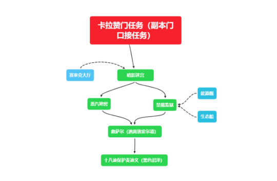以上就是卡拉赞门任务的重要流程,需要打暗影迷宫、蒸汽地窖、禁魔监狱、救萨尔,18波五个副本,好消息是这5个副本都只需要打普通模式,所以第一周玩家们就可以打卡拉赞了。