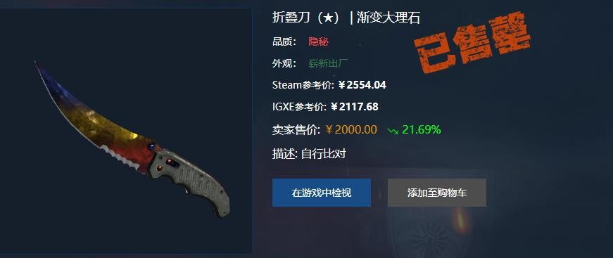 折叠刀渐变大理石的价格在2000~2500区间波动,具体看磨损程度和市值波动情况。