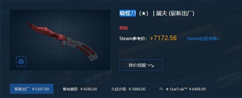 csgo蝴蝶刀屠夫多少钱?