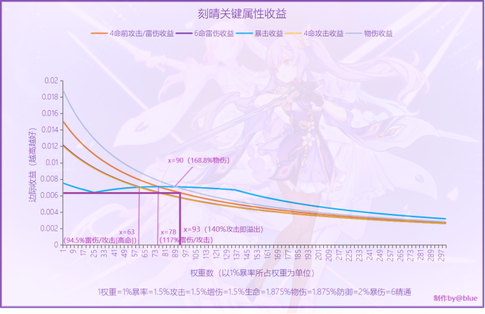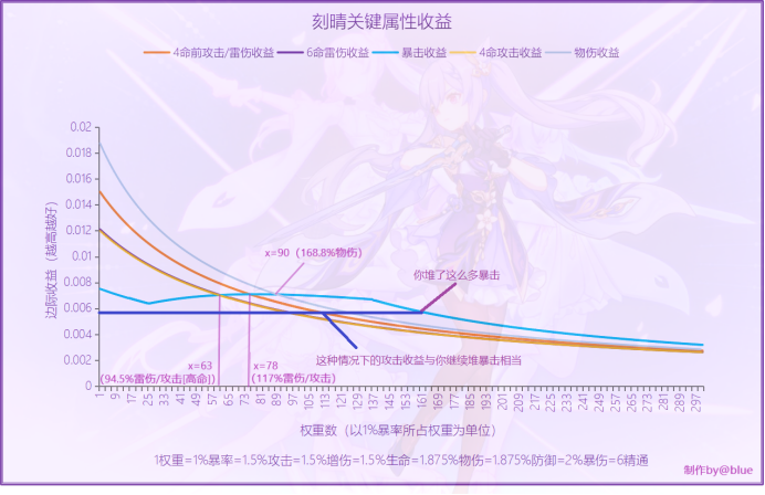 ——通常会和暴击曲线做对比,看交点,图中就是117%以后收益低于暴击,那就可以得出结果,攻击加成应该堆117%左右
