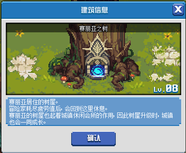 功能建筑:赛利亚之树(恢复疲劳值)、大圣堂(复活)、事务所(讨伐任务)