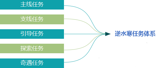 由以上5种任务组成了逆水寒的任务体系,主线、支线、引导这三种任务大家应该都能理解,引导任务为一种玩法的教学任务,主线是含有剧情以及大量经验与物品奖励的任务,支线的经验相对于主线来说较少,但也相当可观,个人观点:因为逆水寒含有等级限制,升级优先清支线,假如实在缺经验,再去做主线任务。