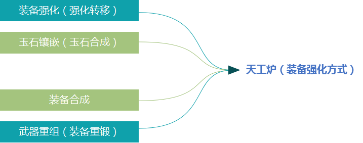 本人也没有太多的研究,就简单的说说。装备上除了三维属性外,还有例如某某技能+1的特殊属性,当然更有极品的就是某个职业全技能+1,有全技能+1的装备一定要留着,切记,切记,以后可以和别的装备合成!说到合成,我们再来一张图表,清晰的看下装备的一些关于强化的功能: