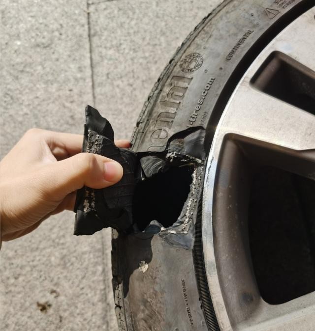 随后糖小幽也是放出了轮胎的图片,可以看到情况还是比较严重的,可能是石头的棱角比较锋利,所以轮胎直接就破了一个洞,只能说幸好情况没有更加严重,而且防爆胎在这种情况下展示了自己的作用,才没有导致悲剧的发生。