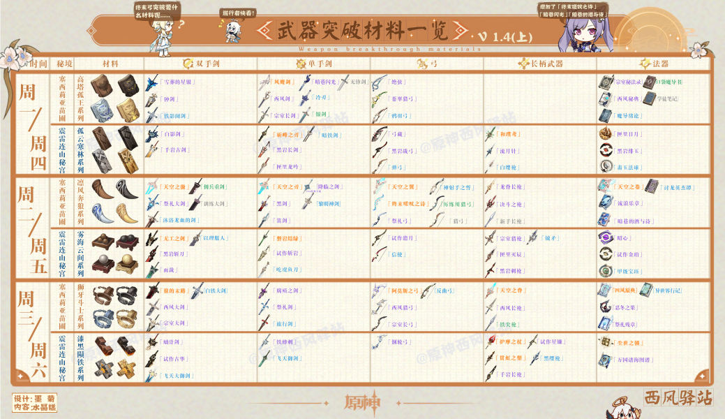原神1.4武器突破材料汇总