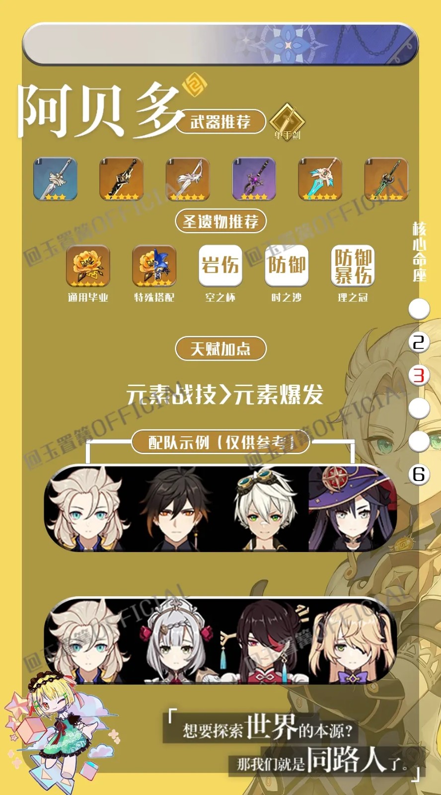 游戏《原神》中,阿贝多是一名五星岩属性角色。那么阿贝多怎么培养呢?还是有很多玩家并不了解的,各位亲爱的小伙伴,让我们一起来看阿贝多一图流培养攻略。