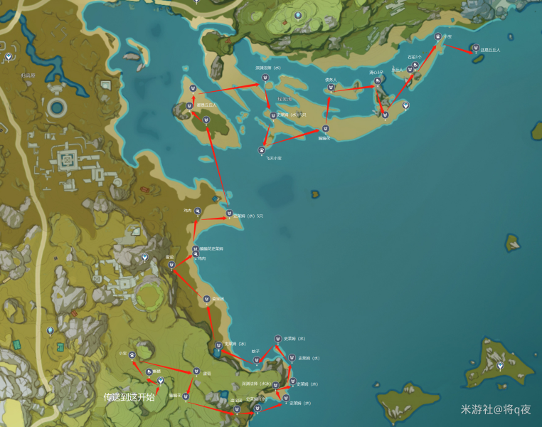 按照上图路线刷材料,可以包含所有怪物种类。