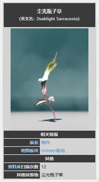 在游戏《星际战甲》中,尘光瓶子草在进入地图的初始位置和离开地图的位置可以找到,主要分布在一些绿色的毒素废液水塘里,扫描瓶子草可以获得尘光瓶子草资源,还可以用来制作夜幕药剂和完成任务落银树庭。