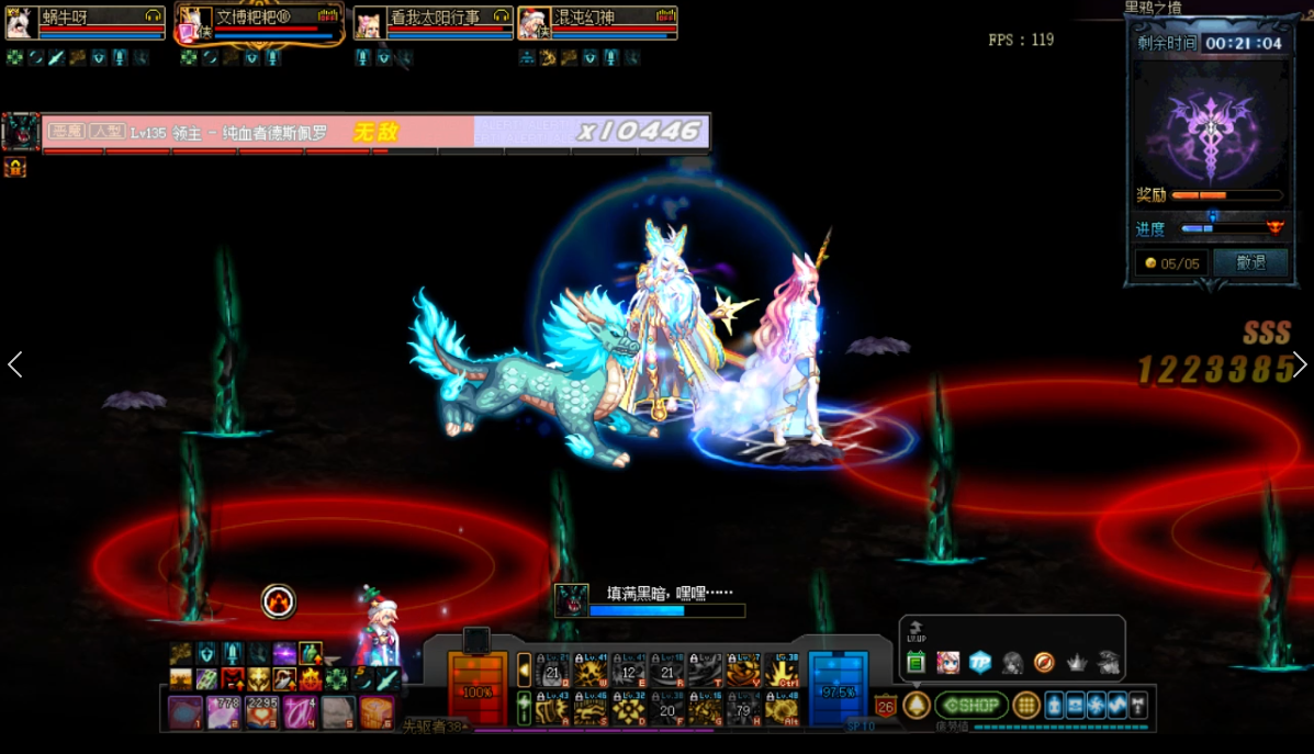 机制3:每名玩家随机在脚底出现蓝色或者白色光圈提示,领主发射箭矢落下时地面出现对应的颜色圈,三个同样样色的圈子相交时出现蓝色光球,需要将球推向领主,需要注意不同颜色光圈相交时,圈子会消失。