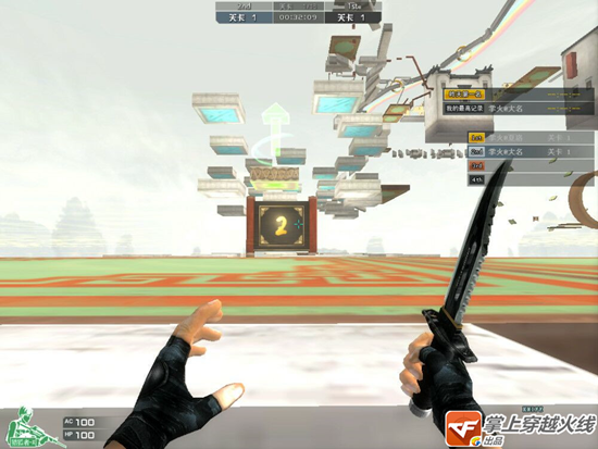 跳跳乐模式是在去年11月份的《极限跑酷》版本中登陆正服的,是一个不需要与敌人进行击杀对抗的娱乐模式,只可持近战武器,不会对其他人造成伤害,不会与其他人发生碰撞,需要使用各种跳跃的身法技巧,翻越地图中设置的种种障碍,最终超越敌人,率先到达终点。