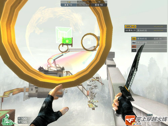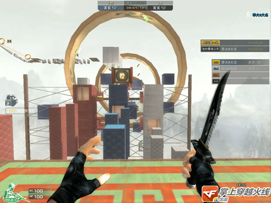 难度最大,全部都由悬空的跳跃装置组成,从底下跳到上面,对方向感的把握要求极高。