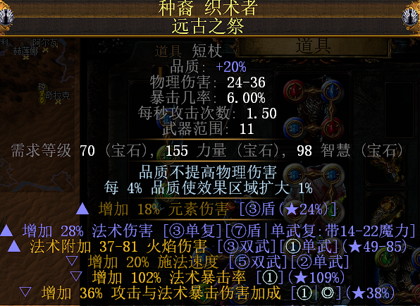 绑定主手武器(一定要放主手吃战斗法师) 高额伤害并且烂大街的C货 这件装备给了高额点伤+高额暴击率 完美契合