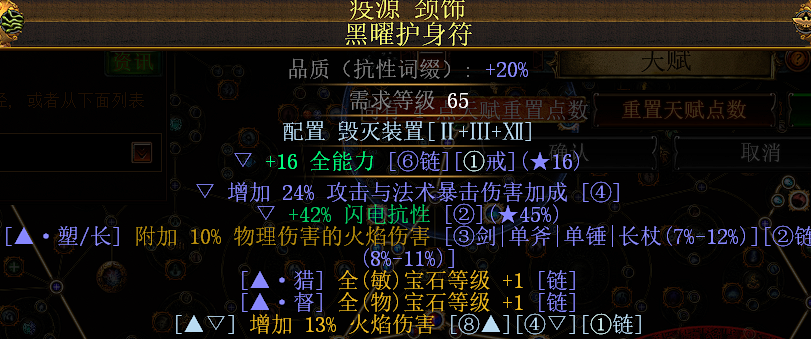 项链自己做的话很好做 督军+猎人洗两个+1等级合成 看情况 后缀弄满火焰E 前缀出额外火焰伤或者火焰穿透 然后一直置换满意就好