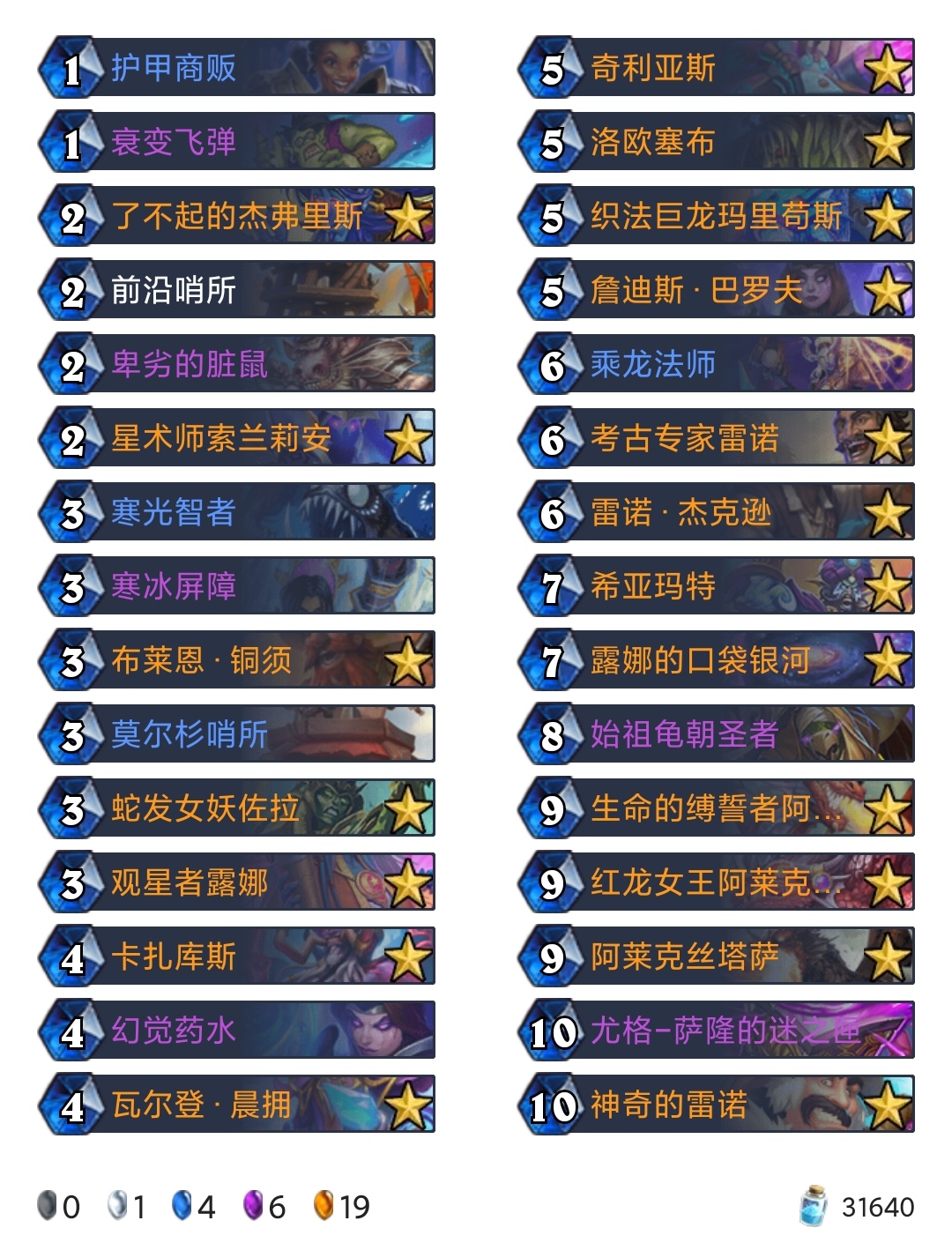 炉石传说贫瘠之地宇宙法狂野卡组搭配是:护甲商贩、奇利亚斯、衰变飞弹、了不起的杰弗里斯、前沿哨所、卑劣的脏鼠、乘龙法师、寒光智者、蛇发女妖佐拉等卡组搭配。