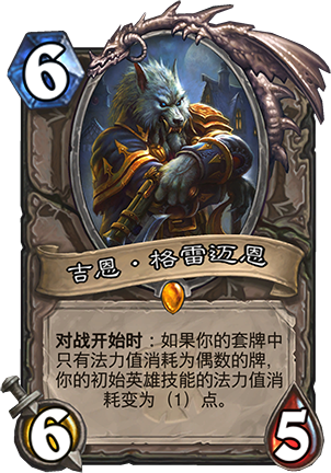 在格雷迈恩国王的领导下,你需要果断放弃法力值消耗为奇数的卡牌,而这会让你的英雄技能只需消耗1点法力值,让你在对战开始时就获得最有力的优势。