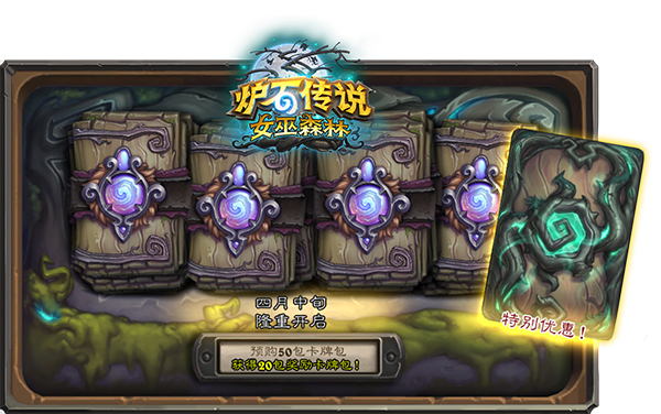 《炉石传说》最新扩展包“女巫森林”包含了135张全新卡牌!在“女巫森林”扩展包正式上线后的一段时间内,登录游戏即可免费领取3包全新卡牌包和1张随机的“女巫森林”传说级别卡牌!