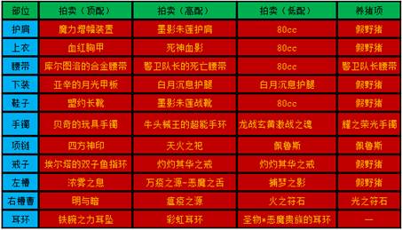 以下装备均筛选可购买的较强力传说装备作推荐,大家可根据毕业票或者平时日常深渊产出史诗强散在不冲突的情况下合理搭配 武器选着请看四章装备分析。